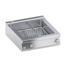 Cadru din otel inoxidabil. Butoane din plastic termorezistent atermic cu margini utile serigrafiate. Incalzire realizata prin elemente de incalzire cu FOLIE GRAVATA: caldura este transferata doar la fundul bazinului pentru economie de energie. Termostat de siguranta cu reactivare manuala. Functionare prin comutator ON-OFF si termostat 30°C-90°C cu sonda imersata in bazin. Blat de lucru din AISI 304 format la rece cu grosime de 2 mm cu colturi rotunjite pentru curatare usoara. Panouri frontale, laterale si posterioare din otel inoxidabil. Bazin format la rece din AISI 304 cu orificiu de scurgere, potrivit pentru recipiente de pana la 150 mm inaltime. Posibilitatea de a sustine mai multe recipiente pana la 2 x (1/1 + 1/3) GN. Robinet de umplere cu apa pe panoul frontal. Manere din AISI 304 cu sectiune transversala eliptica. Scurgere bazin pe panoul frontal actionata prin parghie. Finisaj blat de lucru taiat cu laser pentru potrivire etanssi fixare prin prindere. Accesorii disponibile la cerere. SPECIFICATII TEHNICE Latime: 800 mm Adancime: 900 mm Inaltime: 265 mm Greutate: 46 kg Volum: 0.47 m³ Putere electrica: 3.00 kW