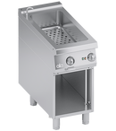 Cadru din otel inoxidabil. Butoane din plastic termorezistent atermic cu margini utile serigrafiate. Incalzire realizata prin elemente de incalzire cu FOLIE GRAVATA: caldura este transferata doar la fundul bazinului pentru economie de energie. Termostat de siguranta cu reactivare manuala. Functionare prin comutator ON-OFF si termostat 30°C-90°C cu sonda imersata in bazin. Blat de lucru din AISI 304 matrisat cu grosime de 2 mm cu colturi rotunjite pentru curatare usoara. Panouri frontale, laterale si posterioare din otel inoxidabil. Bazin matrisat la rece din AISI 304 cu orificiu de scurgere, potrivit pentru recipiente de pana la 150 mm inaltime. Posibilitatea de a sustine multiple recipiente pana la 1/1 + 1/3 GN. Robinet de umplere cu apa pe panoul frontal. Manere din AISI 304 cu sectiune transversala eliptica. Scurgere bazin pe panoul frontal actionata prin parghie. Finisaj blat de lucru taiat cu laser pentru potrivire etanssi fixare prin prindere. Picioare reglabile pe inaltime din otel inoxidabil. Accesorii disponibile la cerere. SPECIFICATII TEHNICE Latime: 400 mm Adancime: 900 mm Inaltime: 850 mm Greutate: 36 kg Volum: 0.56 m³ Putere electrica: 1.50 kW