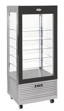 Vitrina frigorifica verticala cu ventilatie cu rafturi din sticla, capacitate 480L, putere 0,43kW asigura conditii optime de refrigerare pentru produse alimentare. Sistemul de ventilatie integrat mentine temperatura uniforma in intreaga camera frigorifica, eliminand punctele calde si garantand conservarea corecta a produselor.