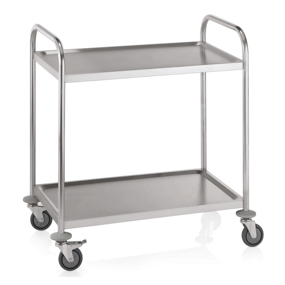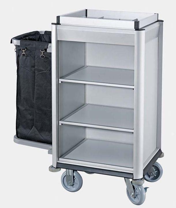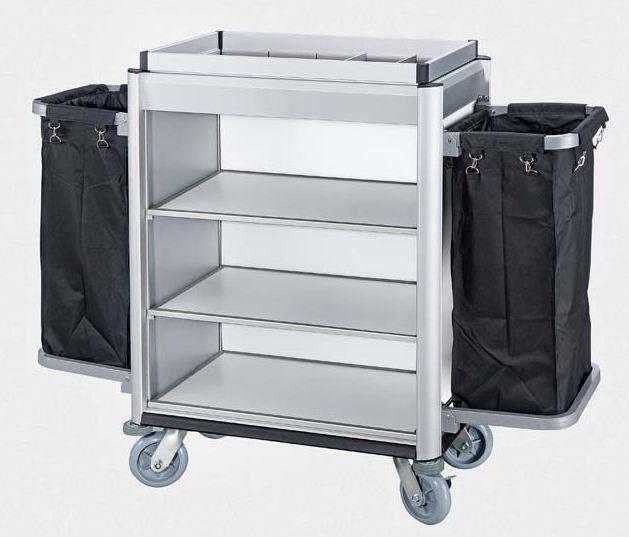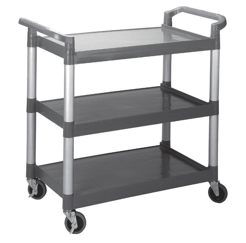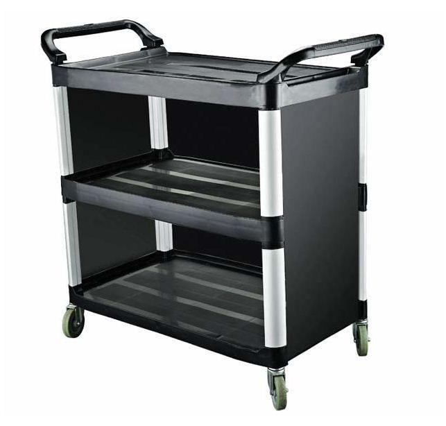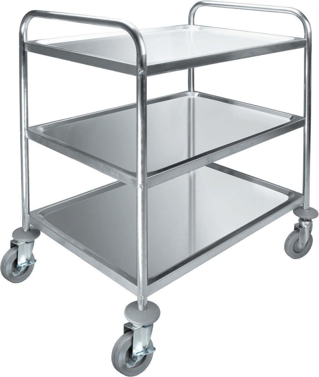 Gheridon cu 3 planuri pentru servire.Rama din aluminiu, polite din polipropilena.Dimensiuni : 96 x 50 x 102 cm.Distanta intre polite : 30 cm.Dotat cu 4 roti din care 2 cu frana.