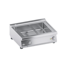 Cadru din otel inoxidabil. Butoane din plastic termorezistent atermic cu margini utile serigrafiate. Incalzire realizata prin elemente de incalzire cu FOLIE GRAVATA: caldura este transferata doar la baza rezervorului pentru economie de energie. Termostat de siguranta cu reactivare manuala. Functionare prin comutator ON-OFF si termostat 30°C-90°C cu sonda imersata in rezervor. Blat de lucru AISI 304 cu colturi rotunjite pentru curatare usoara. Panouri frontale, laterale si posterioare din otel inoxidabil. Rezervor AISI 304 format la rece cu orificiu de scurgere, potrivit pentru recipiente de pana la 150 mm inaltime. Posibilitatea de a sustine multiple recipiente pana la 2/1 GN. Robinet de umplere cu apa pe panoul frontal. Manere AISI 304 cu sectiune transversala eliptica. Scurgere rezervor pe panoul frontal, actionata prin parghie. Finisaj blat taiat cu laser pentru potrivire etansa si fixare prin prindere. Accesorii disponibile la cerere. SPECIFICATII TEHNICE Latime: 800 mm Adancime: 700 mm Inaltime: 265 mm Greutate: 24 kg Volum: 0.38 m³ Putere electrica: 2.00 kW
