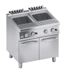 Cadru din otel inoxidabil. Butoane din plastic rezistente la temperaturi inalte cu gradatii. Incalzire obtinuta prin arzator tubular cu flacara stabilizata din otel inoxidabil, cu supapa de siguranta cu termocuplu si flacara pilot protejata. Putere si interventie rapida a arzatoarelor pentru a evita scaderea temperaturii cand produsul este turnat in rezervor. Echipat cu robinet de gaz de siguranta care permite reglarea puterii de la maxim la minim. Siguranta garantata de un termocuplu mentinut activ de flacara arzatorului pilot. Blat de lucru din otel inoxidabil AISI 304 cu margini rotunjite pentru curatare usoara. Acoperiri frontale, laterale si posterioare din otel inoxidabil. Cuve de gatit (capacitate de 26 litri fiecare) fabricate din otel inoxidabil AISI 316 prin formare la rece, rezistente la apa sarata si amidon, cu zona de atingere si evacuare amidon, orificiu de scurgere si suprafata frontala perforata mica din otel inoxidabil pentru sustinerea cosurilor. Robinet pentru umplere si reumplere cu apa pozitionat pe panoul frontal. Scurgerea rezervorului pozitionata in interiorul masinii pentru a evita deschiderile accidentale. Racord de scurgere fabricat integral din otel inoxidabil AISI 316. Finisaj blat de lucru taiat cu laser pentru potrivire etansa si fixare prin legare. Testat cu gaz natural sau GPL, in functie de necesitatile utilizatorului. Picioare reglabile pe inaltime din otel inoxidabil. Accesorii disponibile la cerere.