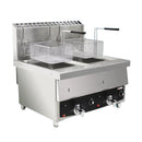 Friteuza dubla pe gaz 10+10 Lt., 6,5 kW + 6,5 kW, cu robinet evacuate
