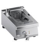 Cadru din otel inoxidabil. Butoane din plastic rezistente la temperaturi ridicate, cu gradatii.. Incalzire cu ulei obtinuta prin elemente de incalzire din otel inoxidabil, scufundate in ulei si usor basculante pentru operatiuni simple de curatare. Rezervor de 11 litri prevazut cu termostat, care permite reglarea temperaturii intre 100°C si 190°C. Termostat de siguranta cu reactivare manuala. Rezervor din otel inoxidabil cu margini rotunjite in panta spre gura de scurgere. Suprafata de lucru si rezervor turnate pentru curatare usoara. Panouri frontale, laterale si posterioare din otel inoxidabil. Echipat standard cu un cos K26580. Finisaj blat de lucru taiat cu laser pentru potrivire cap la cap si fixare prin legare. Picioare reglabile pe inaltime din otel inoxidabil. Accesorii disponibile la cerere. SPECIFICATII TEHNICE Latime: 400 mm Adancime: 700 mm Inaltime: 265 mm Greutate: 48 kg Volum: 0.45 m³ Putere electrica: 8.70 kW