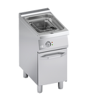Cadru din otel inoxidabil. Butoane din plastic rezistente la temperaturi ridicate, cu gradatii.. Usa cu pereti dubli si maner robust. Incalzire cu ulei obtinuta prin elemente de incalzire fixe din otel inoxidabil, scufundate in ulei in mijlocul rezervorului pentru operatiuni usoare de curatare. Termostat de siguranta cu reactivare manuala. Rezervor de 10 litri prevazut cu termostat, care permite reglarea temperaturii intre 100°C si 190°C. Rezervor din otel inoxidabil cu margini rotunjite in panta spre gura de scurgere. Cabinet potrivit pentru un recipient de ulei din otel inoxidabil. Suprafata de lucru si rezervor turnate pentru curatare usoara. Panouri frontale, laterale si posterioare din otel inoxidabil. Echipat standard cu un cos din otel inoxidabil K26440 si un capac pentru rezervor ATA-C2COPFG. Finisaj blat taiat cu laser pentru potrivire etansa si fixare prin prindere. Picioare reglabile pe inaltime din otel inoxidabil. Accesorii disponibile la cerere.