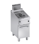 Cadru din otel inoxidabil. Butoane din plastic rezistente la temperaturi ridicate, cu gradatii.. Incalzirea uleiului realizata prin arzatoare din otel inoxidabil cu combustie optimizata, echipate cu schimbator de caldura in rezervor. Interventie puternica si rapida a elementelor de incalzire pentru a preveni scaderea temperaturii uleiului la introducerea alimentelor in rezervor. Un rezervor de 12 litri, echipat cu supapa de siguranta pentru gaz, care permite reglarea temperaturii intre 120°C si 190°C. Siguranta garantata de un termocuplu mentinut activ de flacara arzatorului pilot si de un termostat de siguranta cu resetare manuala. Rezervor din otel inoxidabil cu margini rotunjite in panta spre orificiul de scurgere. Scurgerea uleiului din rezervor prin robinet. Livrat standard cu doua cosuri din otel acoperite cu strat protector K26440 si un capac pentru bazin din otel inoxidabil ATA-C2COPFG. Cabinet adecvat pentru un recipient din otel inoxidabil pentru colectarea uleiului. Blat de lucru din otel inoxidabil AISI 304 cu rezervor sudat din otel inoxidabil AISI 304. Finisaj blat taiat cu laser pentru potrivire etansa si fixare prin legare. Testat cu gaz natural sau GPL, conform necesitatilor utilizatorului. Picioare reglabile pe inaltime din otel inoxidabil. Accesorii disponibile la cerere.
