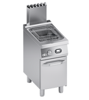 Cadru din otel inoxidabil. Butoane din plastic termorezistent atermic cu margini serigrafiate utile. Incalzirea uleiului realizata prin arzatoare din otel inoxidabil cu combustie optimizata, echipate cu schimbator de caldura in rezervor. Interventie puternica si rapida a elementelor de incalzire pentru a preveni scaderea temperaturii cand produsul este turnat in rezervor. Un rezervor de 15 litri, echipat cu supapa de siguranta pentru gaz controlata de o placa electronica cu termocuplu clasa J, care permite reglarea temperaturii pana la 190°C. Siguranta garantata de un termocuplu mentinut activ de flacara arzatorului pilot. Indicatie pe afisaj a interventiei termostatului de siguranta. Ciclul de topire asigura controlul electronic al incalzirii uleiului la intervale programate atat in faza de incalzire a uleiului (cand se foloseste grasime solida) cat si in faza de mentinere a temperaturii. Software care garanteaza atingerea exacta a temperaturii setate, evitand stresul termic al uleiului si oxidarea acestuia. Afisaj care arata temperatura uleiului din rezervor in timp real. Functie timer pentru alertarea utilizatorului cu un buzzer cand timpul de gatire presetat este atins. Rezervor din otel inoxidabil cu margini rotunjite in panta spre orificiul de scurgere conectat la un recipient din otel inoxidabil pentru colectarea uleiului. Uleiul se scurge din rezervor prin intermediul unui robinet intr-un recipient de colectare intern cu filtru. Livrat standard cu doua cosuri din otel acoperite cu un strat de material protector K26281 si un capac pentru bazin din otel inoxidabil ATA-K7COPFGP. Livrat standard cu un recipient pentru ulei din otel inoxidabil cu filtru. Blat de lucru din otel inoxidabil AISI 304 turnat pentru curatare usoara. Capac frontal din otel inoxidabil AISI 304. Rezervor din otel inoxidabil format la rece. Finisaj blat de lucru taiat cu laser pentru potrivire etansa si fixare prin legare. Testat cu gaz natural sau GPL, in functie de nevoile utilizatorului. Picioare din otel inoxidabil reglabile pe inaltime. Accesorii disponibile la cerere.