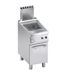 Cadru din otel inoxidabil. Butoane din plastic rezistente la temperaturi ridicate, cu gradatii.. Incalzirea uleiului realizata prin arzatoare din otel inoxidabil cu combustie optimizata, echipate cu schimbator de caldura in rezervor. Interventie puternica si rapida a elementelor de incalzire pentru a preveni scaderea temperaturii cand produsul este turnat in rezervor. Un rezervor de 15 litri, echipat cu supapa termostatica mecanica cu 8 pozitii corespunzand la 8 niveluri de temperatura de la 120°C la 190°C. Siguranta garantata de un termocuplu mentinut activ de flacara arzatorului pilot. Termostat de siguranta suplimentar. Rezervor din otel inoxidabil cu margini rotunjite inclinate spre orificiul de scurgere conectat la un recipient din otel inoxidabil pentru colectarea uleiului. Uleiul se scurge din rezervor printr-un robinet intr-un recipient de colectare intern cu filtru. Livrat standard cu un cos de otel acoperit cu un strat de material protector K26281 si un capac pentru bazin din otel inoxidabil ATA-K7COPFGP. Livrat standard cu un recipient pentru ulei din otel inoxidabil cu filtru. Blat din otel inoxidabil AISI 304 turnat pentru curatare usoara. Panou frontal din otel inoxidabil AISI 304. Rezervor din otel inoxidabil format la rece. Finisaj blat taiat cu laser pentru potrivire etansa si fixare prin legare. Testat cu gaz natural sau GPL, in functie de nevoile utilizatorului. Picioare reglabile pe inaltime din otel inoxidabil. Accesorii disponibile la cerere.