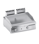 Cadru din otel inoxidabil. Butoane din plastic termorezistent atermic. Crestere rapida a temperaturii si retentie termica obtinuta prin doua arzatoare cu flacara stabilizata de inalta performanta, potrivite pentru lucrul la temperaturi ridicate. Aprindere prin scanteie electrica functionand la 230V monofazat cu nul. Suprafata de gatit groasa, cu colturi rotunjite si protectie anti-stropire sudata pentru curatare usoara. Placa de gatit usor inclinata spre scurgerea grasimii, conectata la un recipient sub blatul de lucru. Echipat standard cu recipient de colectare grasime. Doua zone diferite de gatit, fiecare cu propriile comenzi de temperatura. Placa de gatit neteda. Prevazut cu robinet de gaz cu termostat de siguranta, care permite reglarea puterii pana la 300°C. Siguranta asigurata prin termocuplu mentinut activ de flacara arzatorului. Finisaj blat taiat cu laser pentru potrivire cap la cap si fixare prin prindere. Testat cu gaz natural sau GPL, in functie de necesitatile utilizatorului. Accesorii disponibile la cerere. SPECIFICATII TEHNICE Latime: 800 mm Adancime: 700 mm Inaltime: 265 mm Greutate: 54 kg Volum: 0.38 m³ Putere electrica: 0.10 kW