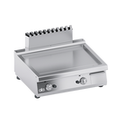 Cadru din otel inoxidabil. Butoane din plastic rezistente la temperaturi ridicate, cu gradatii.. Crestere rapida a temperaturii si retentie termica obtinuta prin arzatoare cu 2 ramificatii cu combustie optimizata, potrivite pentru lucrul la temperaturi inalte, cu supapa de siguranta cu termocuplu controlata termostatic in 8 pozitii si flacara pilot. Reglarea temperaturii intre 150°C si 315°C. Siguranta asigurata prin termocuplu mentinut activ de flacara arzatorului pilot. Plita de gatit unica de dimensiuni mari, joasa, fabricata din otel inoxidabil special si prelucrata cu finisaj neted care permite transmiterea excelenta a caldurii si finisaj lucios tip oglinda pentru a asigura neaderenta alimentelor si curatare rapida conform reglementarilor in vigoare. Doua zone diferite de gatit, fiecare cu propriile comenzi de temperatura. Plita neteda. Blat inclinat spre orificiul de scurgere a grasimii. Orificiu mare pe suprafata de gatit pentru scurgerea grasimilor intr-un recipient furnizat cu capacitate de 1.3 litri sub suprafata de gatit. Blat din otel inoxidabil AISI 304 turnat cu margini rotunjite pentru curatare usoara. Panouri frontale, laterale si posterioare din otel inoxidabil. Dop din teflon, potrivit pentru astuparea scurgerii in cazul gatirii cu pelicula de ulei, disponibil la cerere. Finisaj blat taiat cu laser pentru potrivire etansa si fixare prin legare. Testat cu gaz natural sau GPL, in functie de nevoile utilizatorului. Accesorii disponibile la cerere.