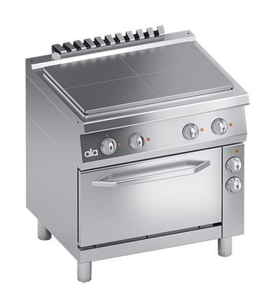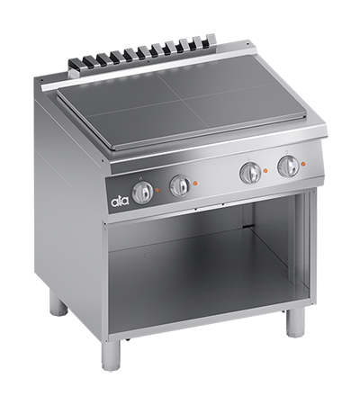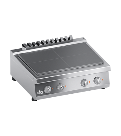 Cadru din otel inoxidabil. Butoane din plastic termorezistent atermic cu margini utile serigrafiate. Incalzire obtinuta prin plite electrice patrate din fonta. Elemente de incalzire fixate pe partea inferioara a plitei, incorpo...