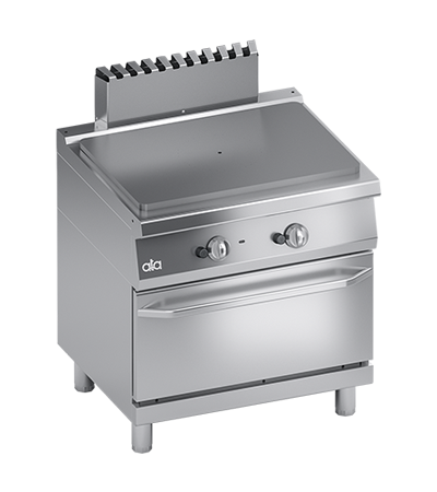 Cadru din otel inoxidabil. Butoane din plastic rezistente la temperaturi ridicate, cu gradatii.. Usa dublu captusita a cuptorului si maner cu sectiune eliptica din AISI 304.