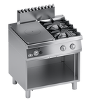 Cadru din otel inoxidabil. Butoane din plastic termorezistent atermic. Suprafata de gatit din fonta groasa cu margini rotunjite, turnata dintr-o singura bucata. Insert central rotund detasabil. Arzator central rotund din otel inoxidabil, potrivit pentru lucrul la temperaturi inalte. Temperatura maxima de aproximativ 500°C in punctul central cel mai fierbinte, scazand usor spre margini datorita diferitelor zone de temperatura izoterma. Incalzire obtinuta prin arzatoare cu flacara stabilizata cu coroana suprapusa etansa, cu puteri diferite (6,2 kw si 8,5 kw). Fiecare arzator este prevazut cu un robinet de gaz de siguranta, care permite reglarea debitului de la maxim la minim. Siguranta asigurata printr-un termocuplu mentinut activ de flacara arzatorului pilot. Gratare si arzatoare realizate din fonta emailata mata RAAF rezistenta la alcali, acizi si foc. Gratare asezate pe suprafete turnate cu margini rotunjite pentru curatare usoara si evitarea scurgerii lichidelor. Tavi turnate din otel inoxidabil cu margini rotunjite, plasate sub arzatoare pentru curatare usoara. Finisaj blat taiat cu laser pentru potrivire "cap la cap" si fixare prin prindere. Picioare reglabile pe inaltime din otel inoxidabil. Testat cu gaz natural sau GPL, in functie de necesitatile utilizatorului. Accesorii disponibile la cerere. SPECIFICATII TEHNICE Latime: 800 mm Adancime: 700 mm Inaltime: 850 mm Greutate: 80 kg Volum: 0.80 m³ Putere gaz: 20.70 kW