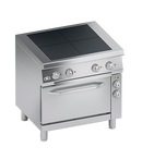 Cadru din otel inoxidabil. Butoane din plastic termorezistent cu margini serigrafiate utile. Usa dublu captusita a cuptorului si maner cu sectiune eliptica din AISI 304. Incalzire obtinuta prin plite electrice patrate radiante din fonta. Fiecare plita electrica are trei elemente de incalzire, incorporate intr-un strat de material izolant. Fiecare plita este prevazuta cu un selector care permite varierea puterii de incalzire de la maxim la minim in sapte pozitii. Siguranta asigurata de un limitator de temperatura situat in interiorul plitei. Suprafata de lucru AISI 304 pentru asezarea perfecta a plitelor electrice, curatare usoara si evitarea deteriorarii componentelor electrice de catre lichide. Panou frontal din otel inoxidabil AISI 304. Plitele electrice sunt la acelasi nivel cu suprafata de lucru: rezultatul este o suprafata neteda care faciliteaza deplasarea vaselor. Echipat standard cu tava de colectare lichide. Cuptor electric cu convectie GN 1/1. Baza cuptorului realizata din tabla groasa de otel, ranforsata cu nervuri. Gratar detasabil din otel inoxidabil. Izolarea camerei de gatit si a usii cuptorului asigurata de un strat de fibra ceramica rezistenta la temperaturi inalte. Incalzire obtinuta prin elemente speciale de incalzire din otel inoxidabil rezistente la temperaturi inalte, amplasate sub baza si deasupra camerei de gatit. Circulatia aerului garantata de un ventilator din otel inoxidabil actionat de un motor electric puternic. Echipat cu termostat care regleaza temperatura intre 90°C si 300°C. Termostat de siguranta cu resetare manuala impotriva supraincalzirii. Posibilitatea de a selecta diferite tipuri de incalzire atat statica cat si ventilata, atat incalzire de jos cat si tip grill, sau incalzire completa. Finisaj blat taiat cu laser pentru potrivire "cap la cap" si fixare prin prindere. Picioare reglabile pe inaltime din otel inoxidabil. Accesorii disponibile la cerere. SPECIFICATII TEHNICE Latime: 800 mm Adancime: 700 mm Inaltime: 850 mm Greutate: 143 kg Volum: 0.80 m³ Putere electrica: 13.65 kW