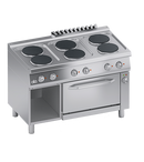 Cadru din otel inoxidabil. Butoane din plastic termorezistent cu margini serigrafiate utile. Usa dublu captusita a cuptorului si maner cu sectiune eliptica din AISI 304. Incalzire obtinuta prin plite electrice rotunde din fonta. Elemente de incalzire fixate pe partea inferioara a placii, incorporate intr-un strat de material izolant. Fiecare plita este prevazuta cu un selector care permite varierea puterii de incalzire de la maxim la minim in sapte pozitii. Siguranta asigurata de un limitator de temperatura situat in interiorul plitei. Suprafata de lucru turnata din AISI 304 cu desen inversat pentru asezarea perfecta a plitelor electrice, curatare usoara si evitarea deteriorarii componentelor electrice de catre lichide. Panou frontal din otel inoxidabil AISI 304. Cuptor electric static GN 1/1 si baza deschisa. Camera de gatit din otel inoxidabil AISI 430 si podea groasa din otel inoxidabil. Gratar detasabil din otel inoxidabil. Izolarea camerei de gatit si a usii cuptorului asigurata de un strat de fibra ceramica rezistenta la temperaturi inalte. Incalzire obtinuta prin elemente de incalzire plasate sub partea inferioara si deasupra camerei de gatit. Echipat cu termostat care regleaza temperatura intre 90°C si 300°C. Posibilitatea de a selecta diferite tipuri de incalzire: doar de jos, doar de sus sau ambele prin intermediul unui selector. Finisaj al blatului taiat cu laser pentru potrivire cap la cap si fixare prin prindere. Picioare reglabile pe inaltime din otel inoxidabil. Accesorii disponibile la cerere. SPECIFICATII TEHNICE Latime: 700 mm Adancime: 1200 mm Inaltime: 850 mm Greutate: 100 kg Volum: 1.15 m³ Putere electrica: 18.60 kW