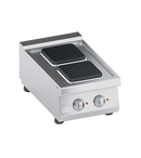 Cadru din otel inoxidabil. Butoane din plastic termorezistent atermic cu margini utile serigrafiate. Incalzire obtinuta prin plite electrice patrate din fonta. Elemente de incalzire fixate pe partea inferioara a plitei, incorporate intr-un strat de material izolant. Fiecare plita este prevazuta cu un selector care permite varierea puterii de incalzire de la maxim la minim in sapte pozitii. Siguranta asigurata de un limitator de temperatura situat in interiorul plitei. Suprafata de lucru turnata din AISI 304 cu desen inversat pentru asezarea perfecta a plitelor electrice, curatare usoara si evitarea deteriorarii componentelor electrice de catre lichide. Panou frontal din otel inoxidabil AISI 304. Finisaj al blatului taiat cu laser pentru potrivire "cap la cap" si fixare prin prindere. Accesorii disponibile la cerere. SPECIFICATII TEHNICE Latime: 400 mm Adancime: 700 mm Inaltime: 250 mm Greutate: 19 kg Volum: 0.21 m³ Putere electrica: 5.20 kW