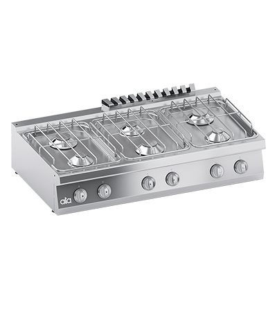 Cadru din otel inoxidabil. Butoane din plastic termorezistent atermic. Incalzire obtinuta prin arzatoare cu flacara stabilizata suprapusa, etanse, cu puteri diferite (8,5 kw). Fiecare arzator este prevazut cu u...
