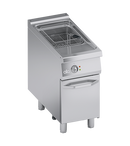 Cadru din otel inoxidabil. Butoane din plastic termorezistent cu margini serigrafiate utile. Usa cu pereti dubli si maner robust. Incalzirea uleiului obtinuta prin elemente de incalzire puternice din otel inoxidabil, scufundate in ulei si usor de inclinat pentru operatiuni simple de curatare. Elemente de incalzire puternice si cu activare rapida, pentru a evita racirea uleiului la turnarea alimentelor in rezervor. Rezervor de 20 litri din otel inoxidabil 18/10 stantat la rece, prevazut cu termostat care permite reglarea temperaturii intre 100°C si 190°C. Termostat de siguranta cu reactivare manuala. Rezervor din otel inoxidabil AISI 304 cu grosime de 2 mm cu margini rotunjite in panta spre gura de scurgere conectata la un recipient de ulei din otel inoxidabil. Suprafata de lucru si rezervor turnate pentru curatare usoara. Panouri frontale, laterale si posterioare din otel inoxidabil. Echipat standard cu recipient pentru ulei din otel inoxidabil cu filtru. Echipat standard cu un cos din otel inoxidabil K26497 si un capac pentru rezervor K4COPFGP. Finisaj blat taiat cu laser pentru potrivire cap la cap si fixare prin prindere. Picioare reglabile pe inaltime din otel inoxidabil. Accesorii disponibile la cerere.