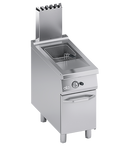 Cadru din otel inoxidabil. Butoane din plastic termorezistent atermic cu margini serigrafiate utile. Incalzirea uleiului realizata prin combustie optimizata cu focuri din otel inoxidabil echipate cu schimbator de caldura in rezervor. Interventie puternica si rapida a elementelor de incalzire pentru a preveni scaderea temperaturii uleiului la introducerea alimentelor in rezervor. Un rezervor de 20 litri, echipat cu supapa de siguranta pentru gaz, care permite reglarea temperaturii intre 120°C si 190°C. Siguranta garantata de un termocuplu mentinut activ de flacara arzatorului pilot si de un termostat de siguranta cu resetare manuala. Rezervor din otel inoxidabil cu margini rotunjite inclinate spre orificiul de scurgere. Scurgerea uleiului din rezervor prin robinet. Livrat standard cu un cos din otel acoperit cu strat protector K2605 si un capac din otel inoxidabil KCOPFGS. Cabinet potrivit pentru un recipient din otel inoxidabil pentru colectarea uleiului. Blat de lucru din otel inoxidabil AISI 304 cu rezervor sudat din otel inoxidabil AISI 304. Finisaj blat taiat cu laser pentru imbinare cap la cap si fixare. Testat cu gaz natural sau GPL, conform cerintelor utilizatorului. Picioare reglabile pe inaltime din otel inoxidabil. Accesorii disponibile la cerere.