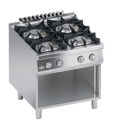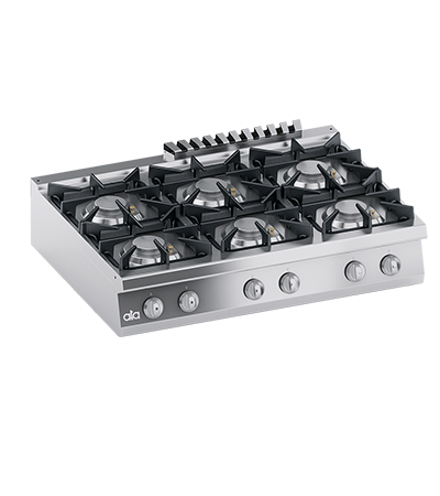 DESCRIERE PRODUS Cadru din otel inoxidabil. Butoane din plastic termorezistent atermic cu margini serigrafiate utile. Incalzire obtinuta prin focuri etanse cu flacara stabilizata cu coroana simpla (8 kW fiecare). Fiecare arzato...