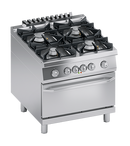 Cadru din otel inoxidabil. Butoane din plastic termorezistent cu margini serigrafiate utile. Usa dublu captusita si maner pentru utilizare intensa. Incalzire obtinuta prin arzatoare cu flacara stabilizata cu coroana dubla, etanse, cu puteri diferite (6 kW si 10 kW). Fiecare arzator este prevazut cu robinet de siguranta pentru gaz, care permite reglarea puterii de la maxim la minim. Siguranta asigurata prin termocuplu mentinut activ de flacara arzatorului. Gratare si arzatoare din fonta emailata mata RAAF rezistenta la alcali, acizi si foc. Gratare asezate pe suprafete turnate cu margini rotunjite si arzatoare etanse pentru curatare usoara. Scurgere blat prin preaplin disponibila la cerere pentru operatiuni rapide de curatare. Cuptor electric static GN 2/1. Camera de gatit din otel inoxidabil AISI 430 si podea groasa din otel inoxidabil. Gratar cuptor detasabil din otel inoxidabil. Izolarea camerei de gatit si a usii cuptorului asigurata printr-un strat de fibra ceramica rezistenta la temperaturi inalte. Incalzire obtinuta prin elemente de incalzire amplasate sub partea inferioara si deasupra camerei de gatit. Echipat cu termostat care regleaza temperatura intre 90°C si 300°C. Blat turnat din otel inoxidabil AISI 304 cu margini rotunjite pentru curatare usoara. Panouri frontale, laterale si posterioare din otel inoxidabil. Finisaj blat taiat cu laser pentru imbinare cap la cap si fixare prin strangere. Testat cu gaz natural sau GPL, in functie de necesitatile utilizatorului. Picioare reglabile pe inaltime din otel inoxidabil. Accesorii disponibile la cerere. SPECIFICATII TEHNICE Latime: 800 mm Adancime: 900 mm Inaltime: 850 mm Greutate: 150 kg Volum: 0.99 m³ Putere electrica: 5.40 kW Putere gaz: 32.00 kW