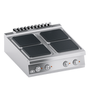 Cadru din otel inoxidabil. Butoane din plastic termorezistent atermic cu margini utile serigrafiate. Incalzire obtinuta prin plite electrice patrate din fonta. Elemente de incalzire fixate pe partea inferioara a plitei, incorporate intr-un strat de material izolant. Fiecare plita este prevazuta cu un selector care permite varierea puterii de incalzire de la maxim la minim in sapte pozitii. Siguranta asigurata de un limitator de temperatura situat in interiorul plitei. Suprafata de lucru din AISI 304 turnata cu grosime de 2 mm prezentand o adancitura pentru asezarea perfecta a plitelor electrice, curatare usoara si evitarea deteriorarii componentelor electrice de catre lichide. Panou frontal din otel inoxidabil AISI 304. Finisaj blat taiat cu laser pentru imbinare cap la cap si fixare prin prindere. Accesorii disponibile la cerere. SPECIFICATII TEHNICE Latime: 800 mm Adancime: 900 mm Inaltime: 265 mm Greutate: 74 kg Volum: 0.47 m³ Putere electrica: 16.00 kW