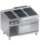 Suprafata de lucru din AISI 304 de 2 mm grosime, cu desen inversat pentru asezarea perfecta a plitelor electrice, curatare usoara si evitarea deteriorarii componentelor electrice de catre lichide. Panou frontal din otel inoxidabil AISI 304.