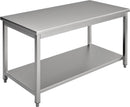 Confectionat din inox. Blat intarit cu insertie PAL. Polita cu intaritura omega. Se livreaza dezasambal.