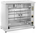 Capacitatea operationala permite gatirea simultana a 8 bucati de pasare pe cele doua axe independente. Sistemul de antrenare cu motoare separate asigura rotirea uniforma a produselor pe toata durata procesului de gatire.